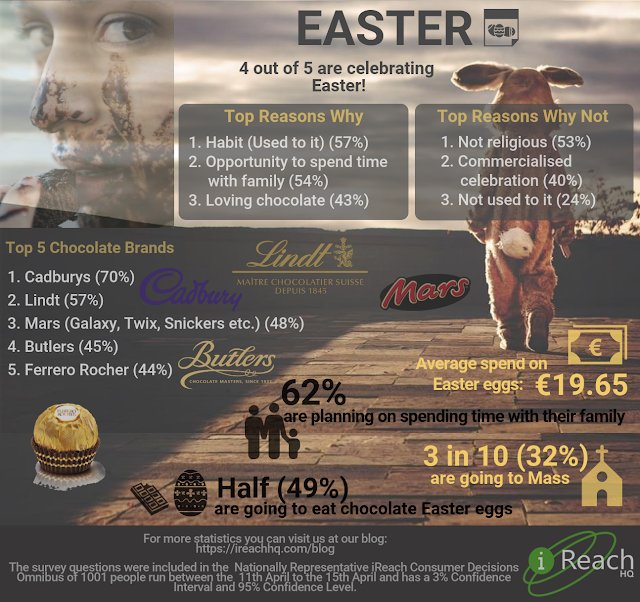 iReach Insights provides a range of research and market intelligence services in Ireland and Europe. iReach has built a Consumer Decisions Research Panel of 40,000 members in Ireland, delivering robust research insights. The survey questions were included in the Nationally Representative iReach Consumer Decisions Omnibus run between the 21th and the 26th March and has a 3% Confidence Interval and 95% Confidence Level.